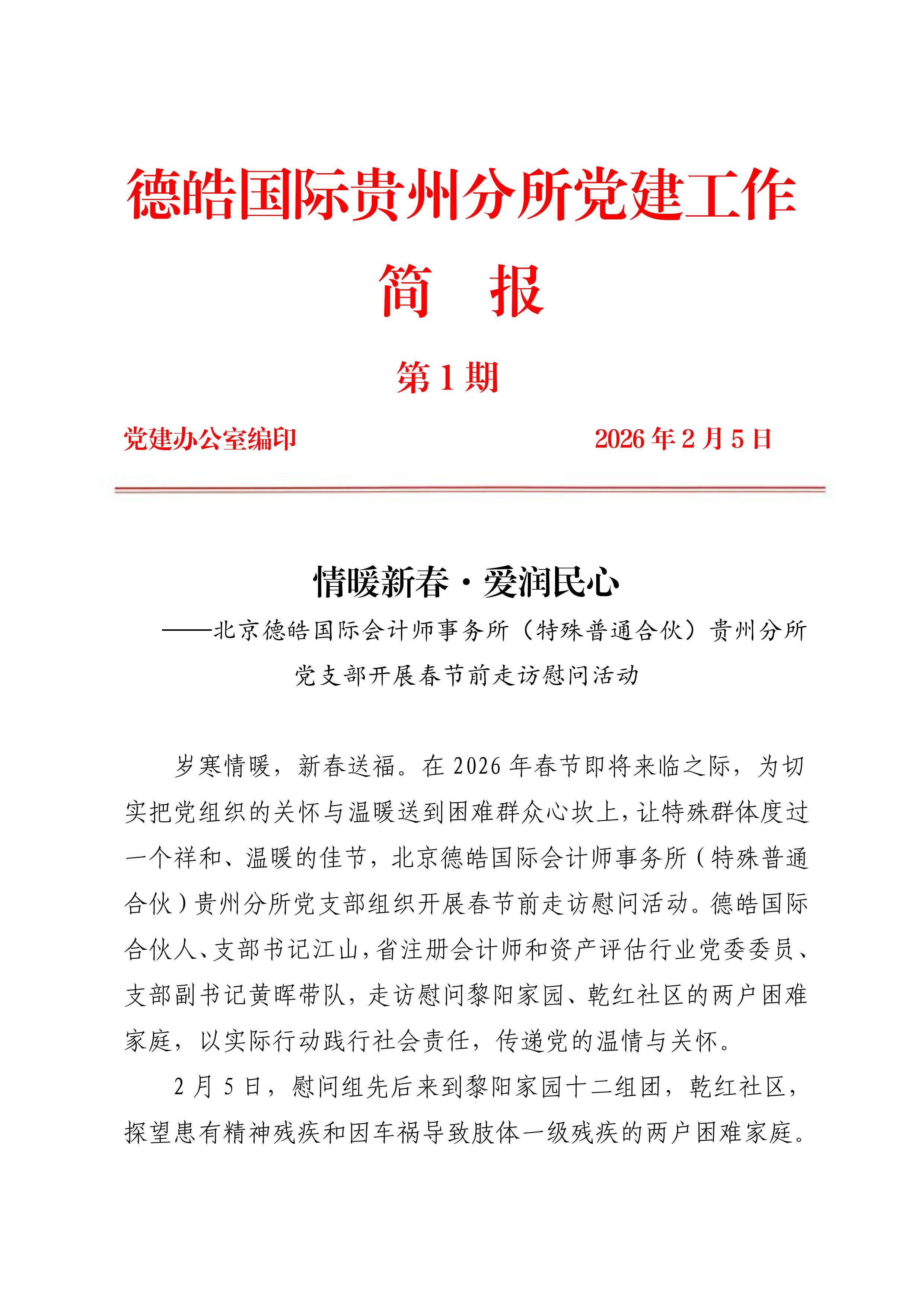 情暖新春●爱润民心——北京德皓国际会计师事务所(特殊普通合伙)贵州分所党支部开展春节前走访慰问活动