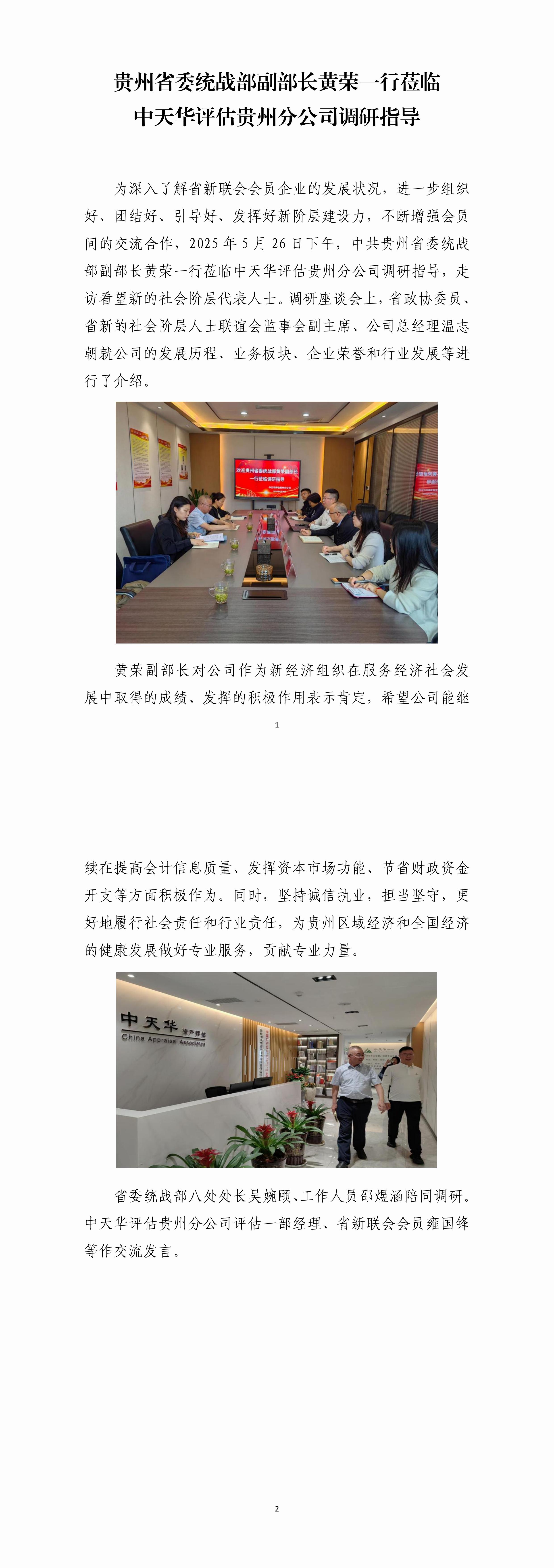 贵州省委统战部副部长黄荣一行莅临中天华评估贵州分公司调研指导