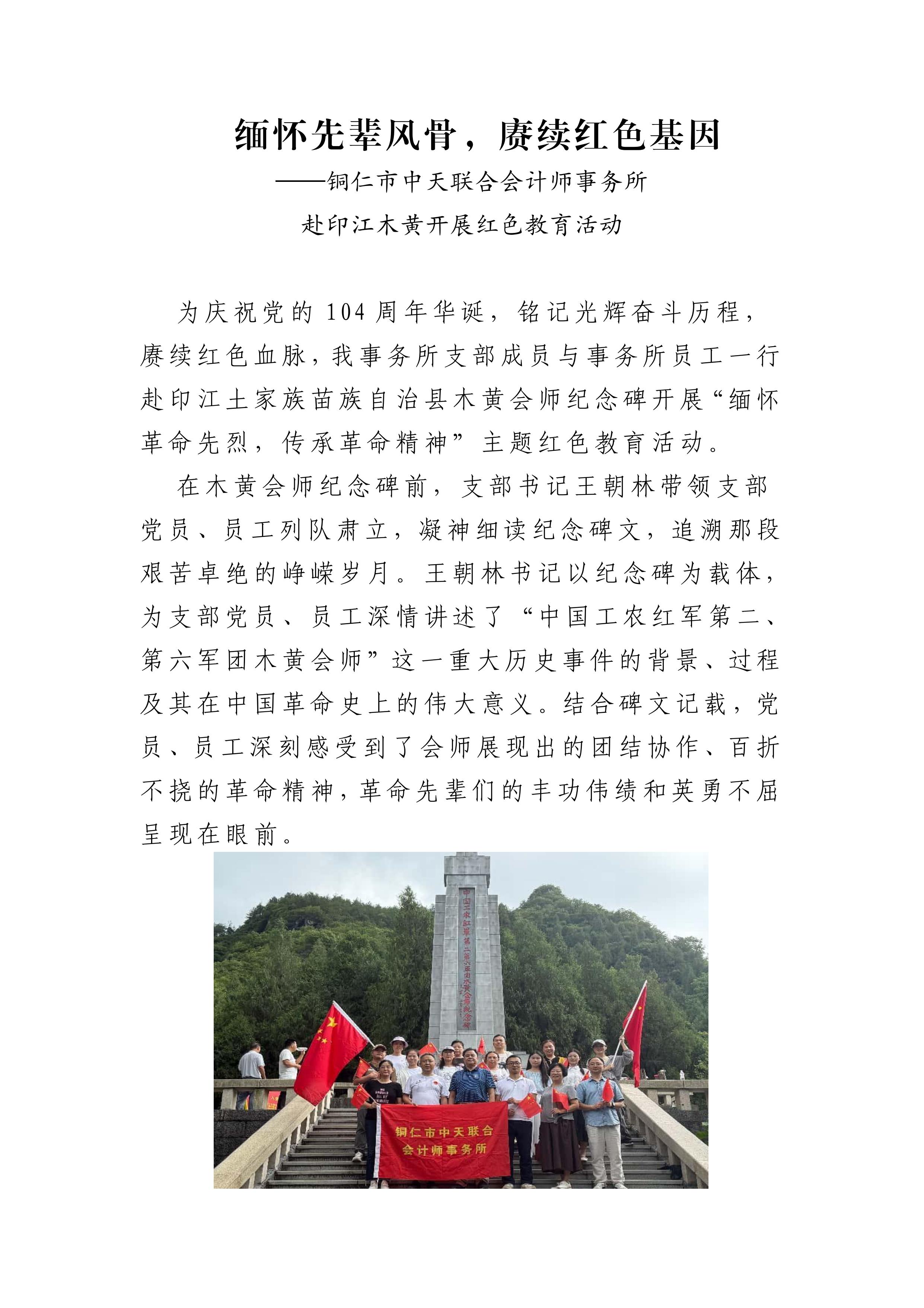 缅怀先辈风骨,赓续红色基因——铜仁市中天联合会计师事务所赴印江木黄开展红色教育活动