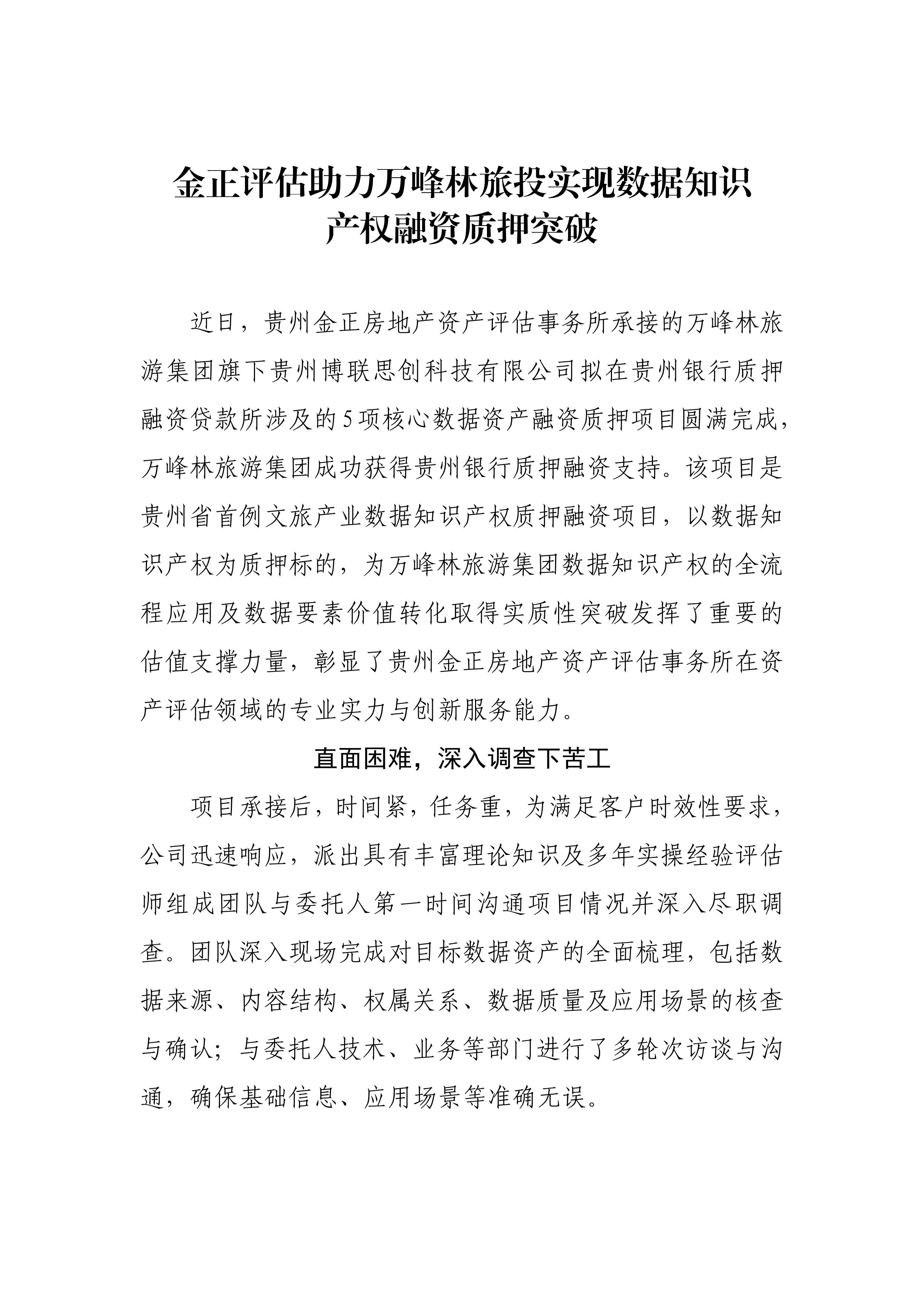 金正评估助力万峰林旅投实现数据知识产权融资质押突破