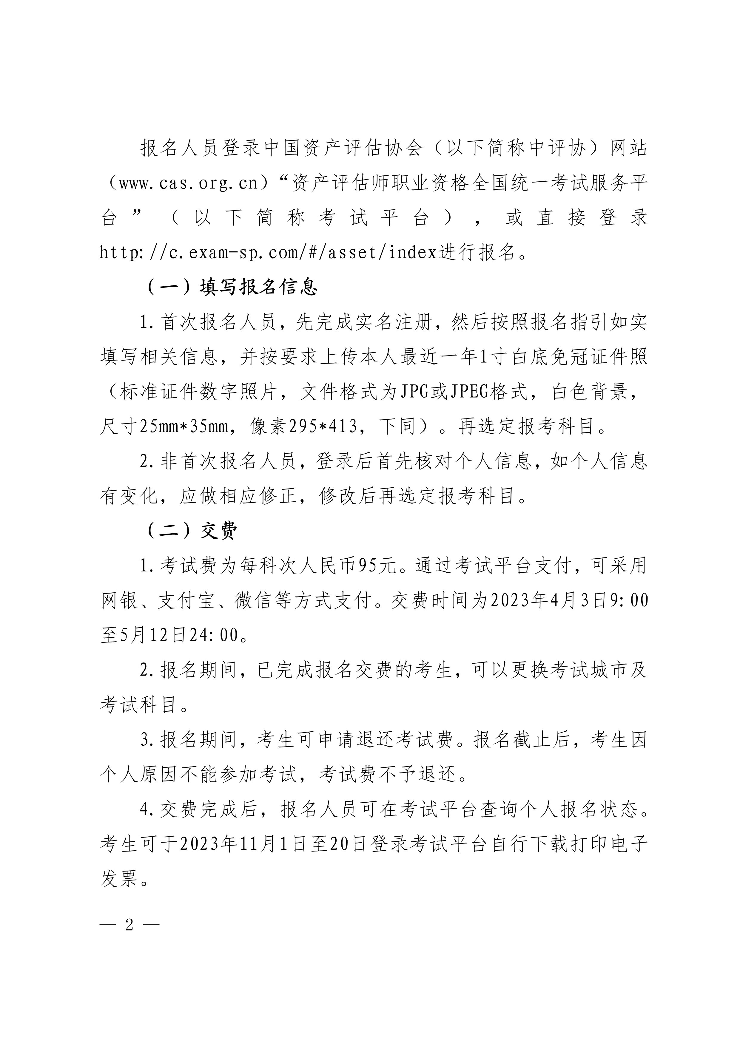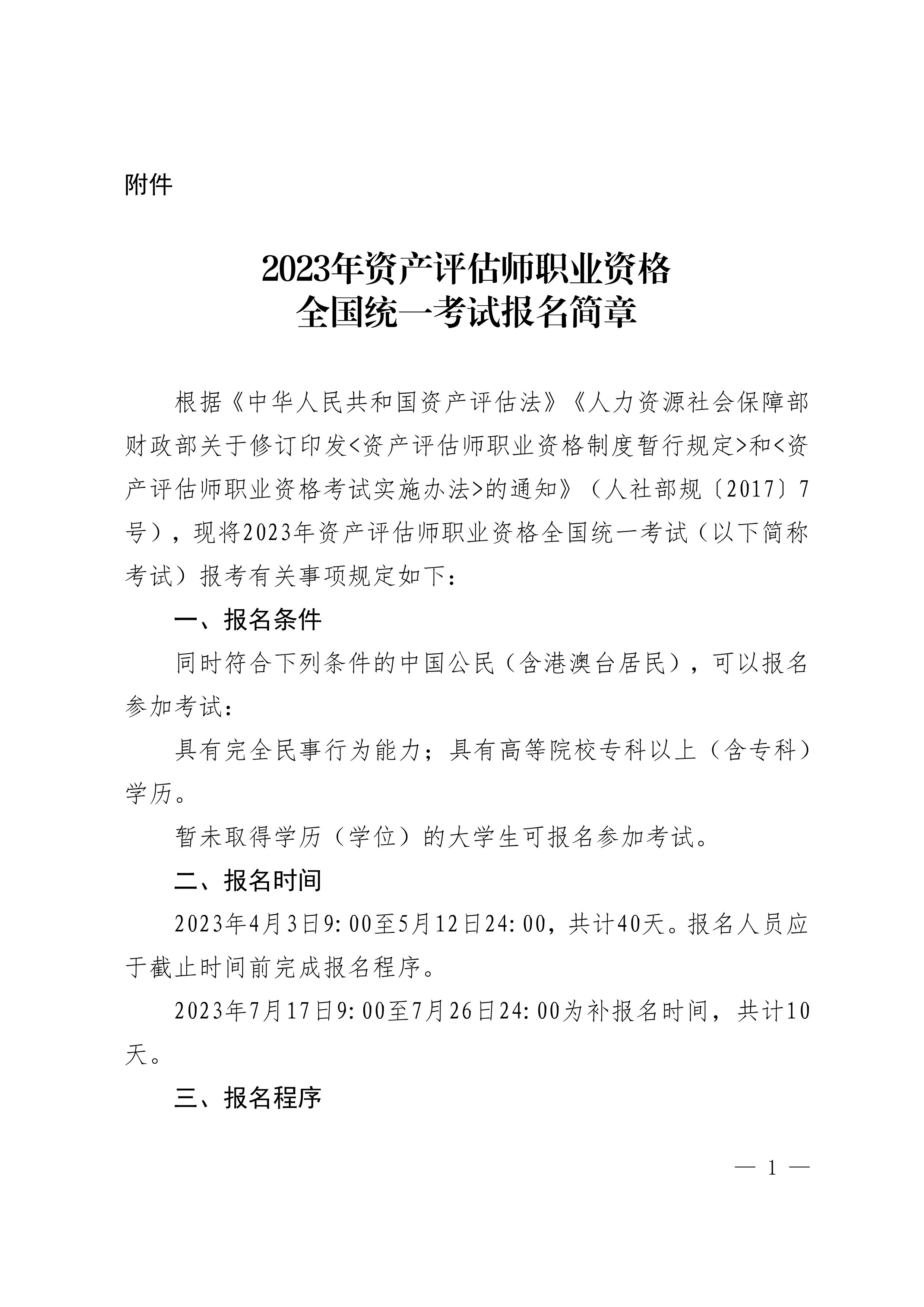 2023年资产评估师职业资格全国统一考试报名简章