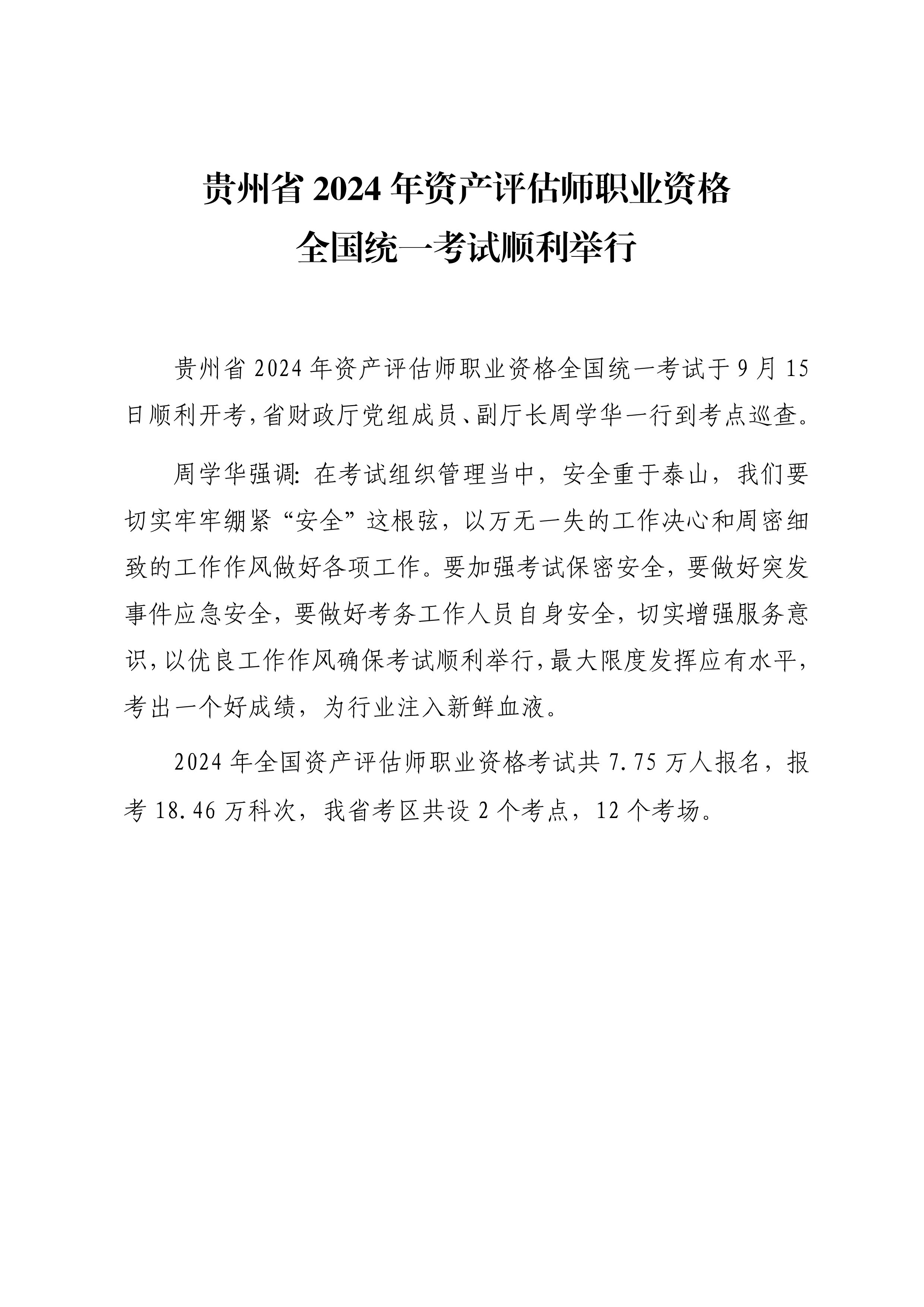 贵州省2024年资产评估师职业资格全国统一考试顺利举行