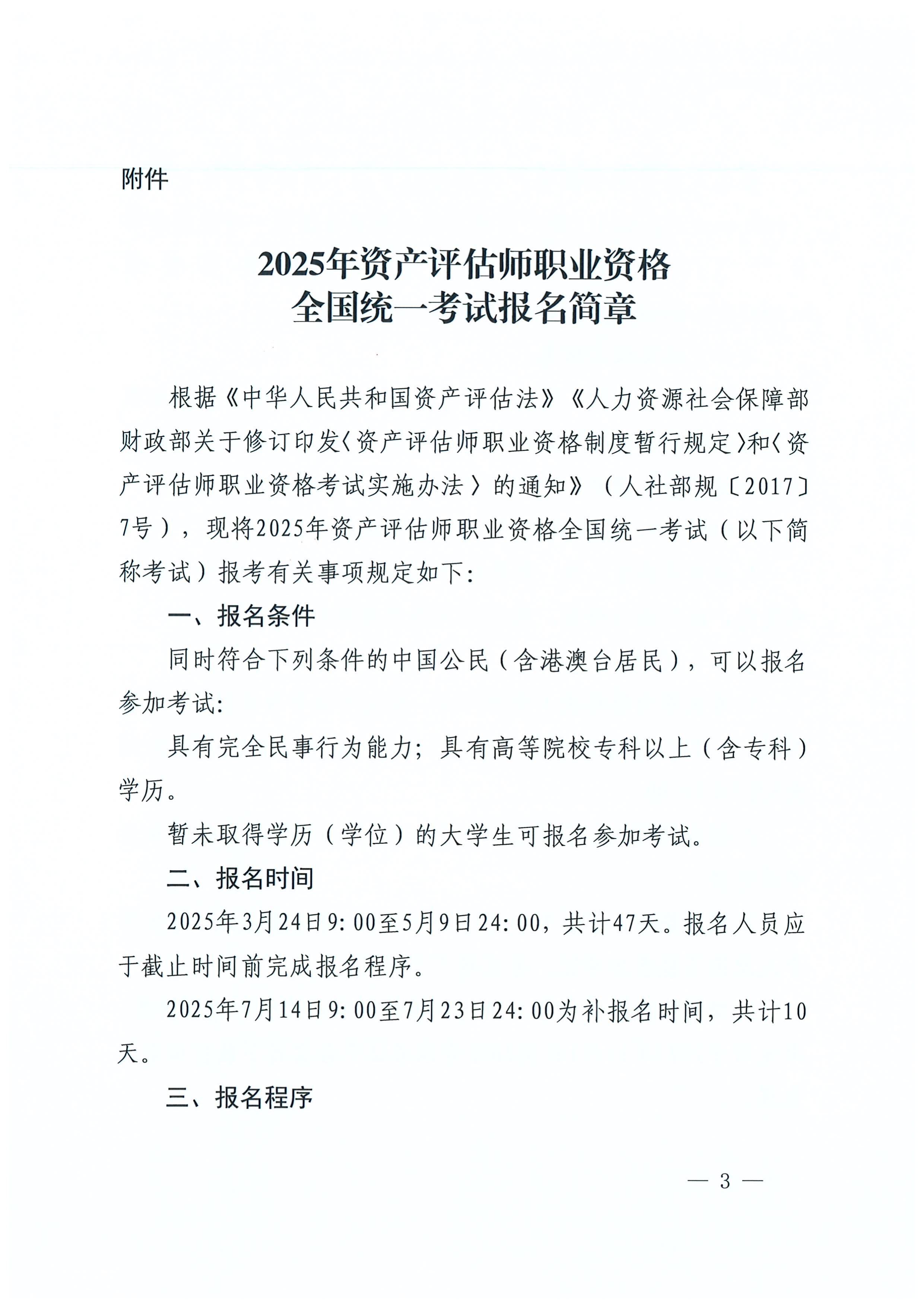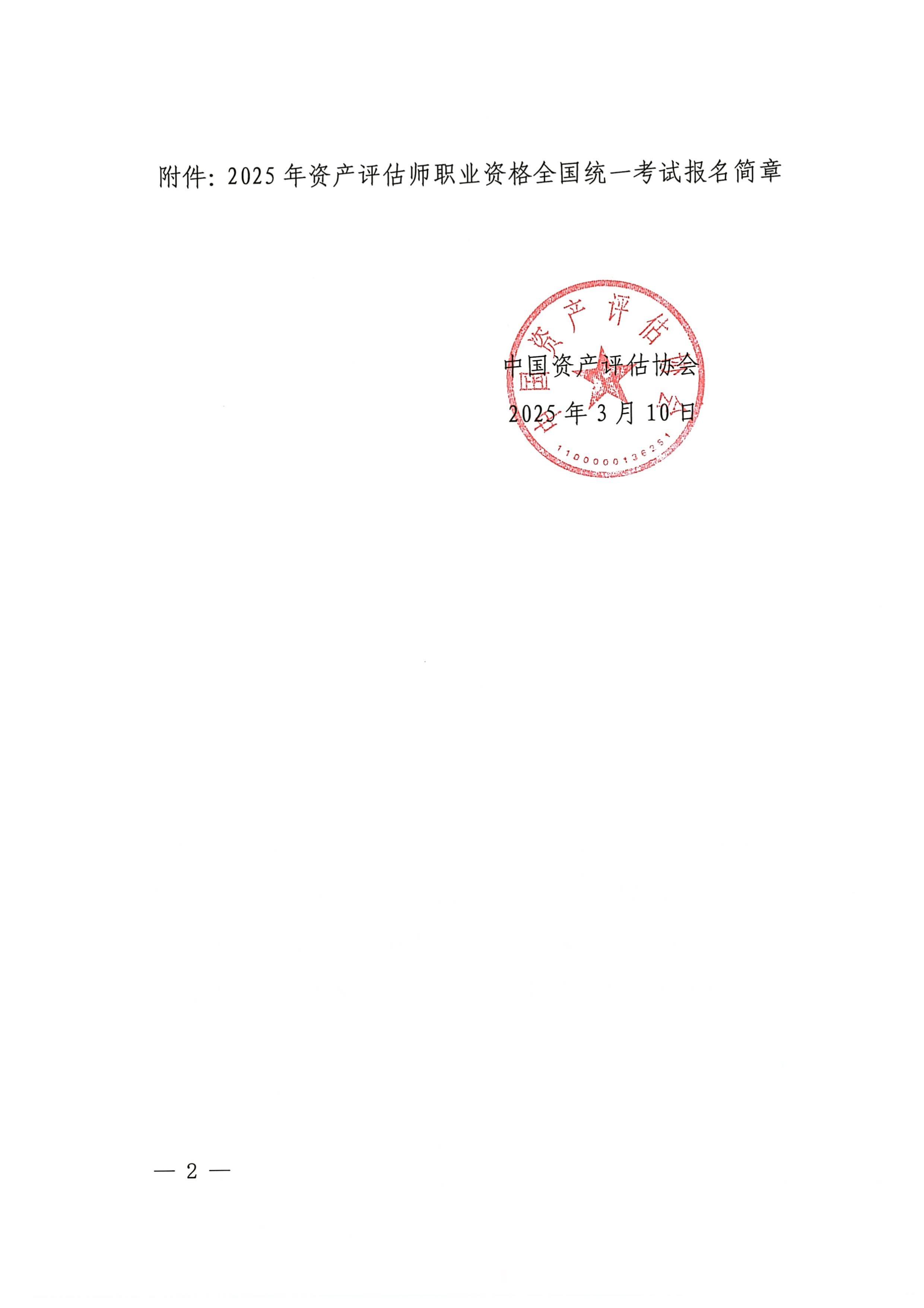 中国资产评估协会关于发布《2025年资产评估师职业资格全国统一考试报名简章》的公告