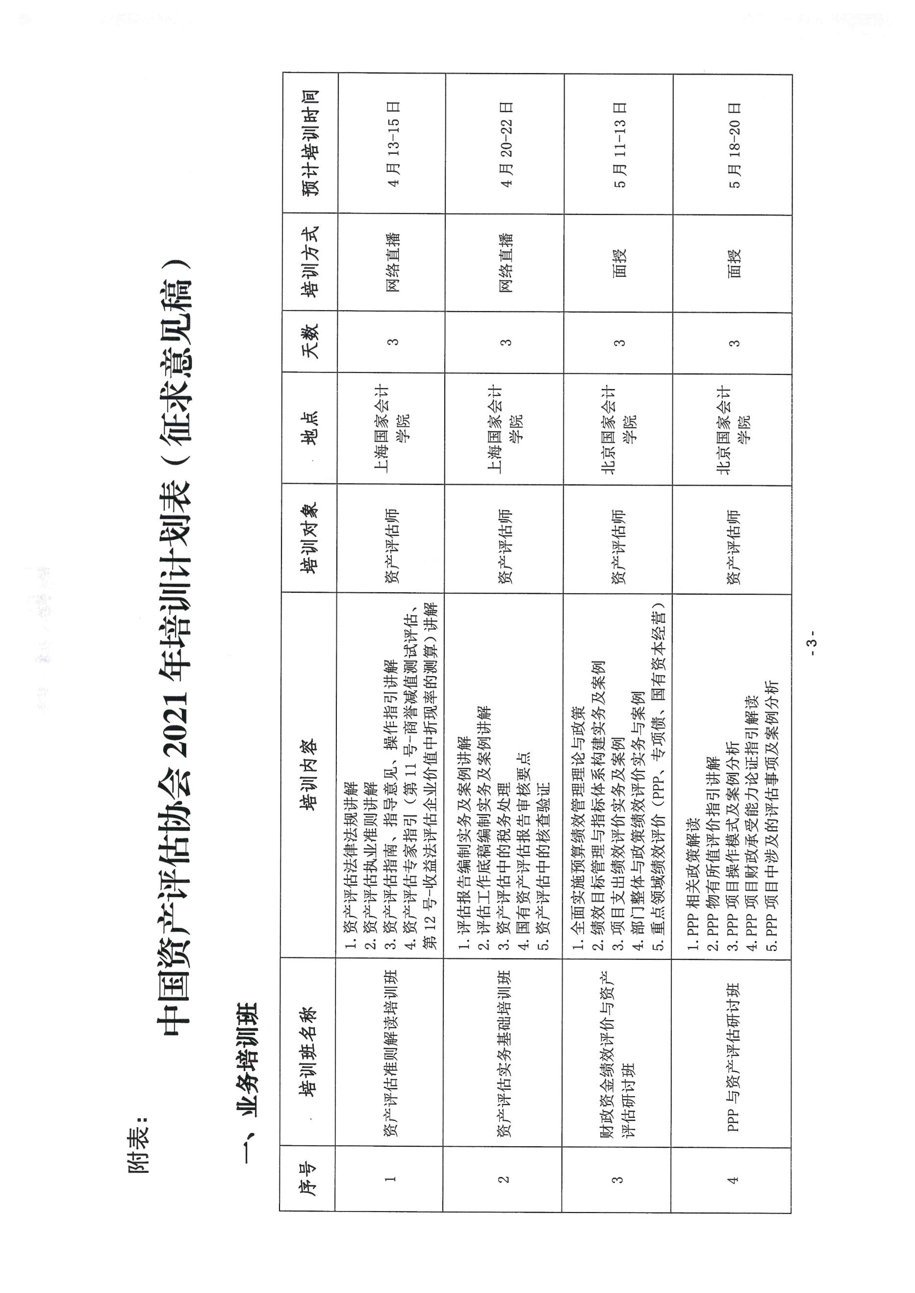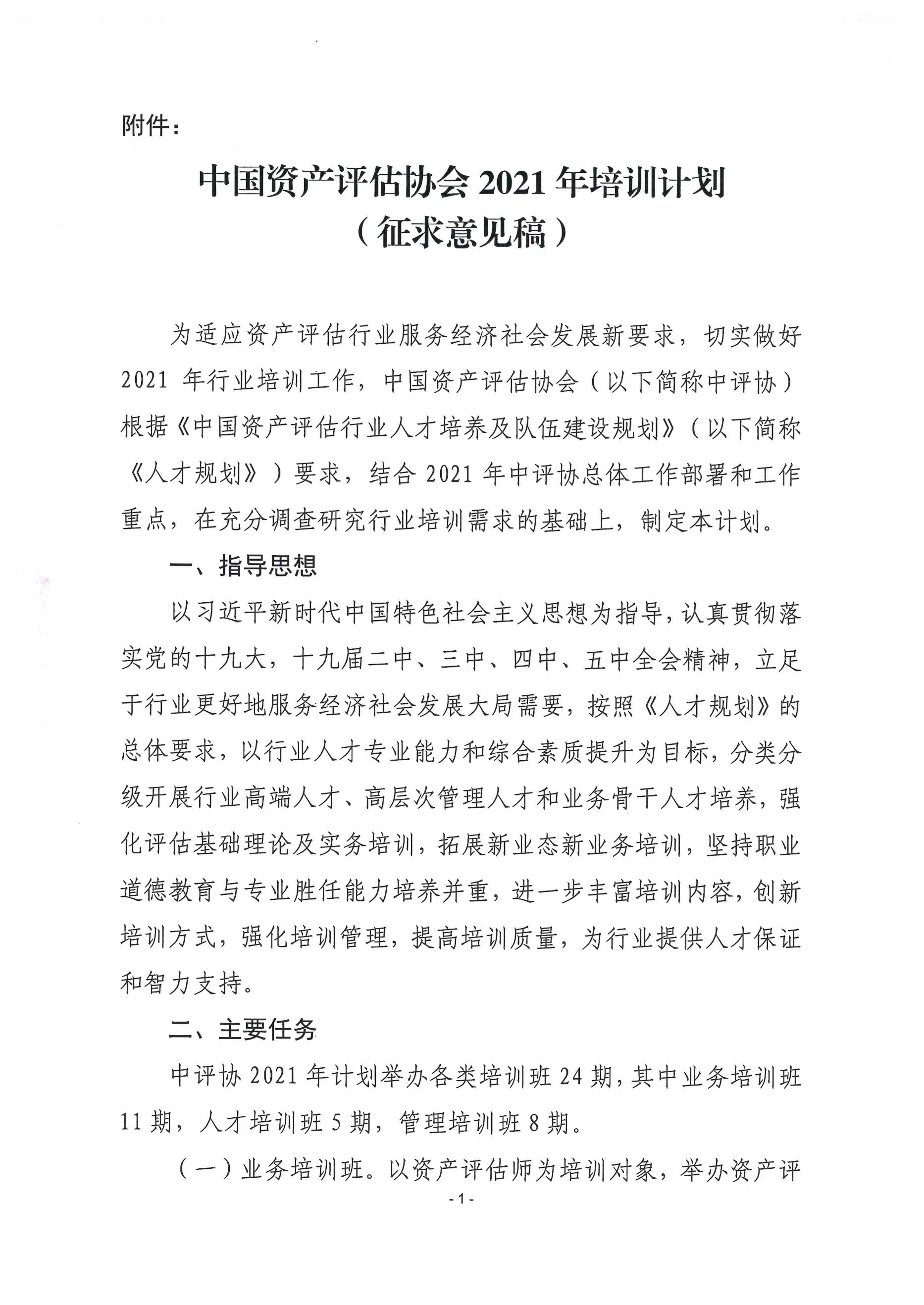附件:1.《中国资产评估协会关于征求2021年行业培训计划意见的通知》