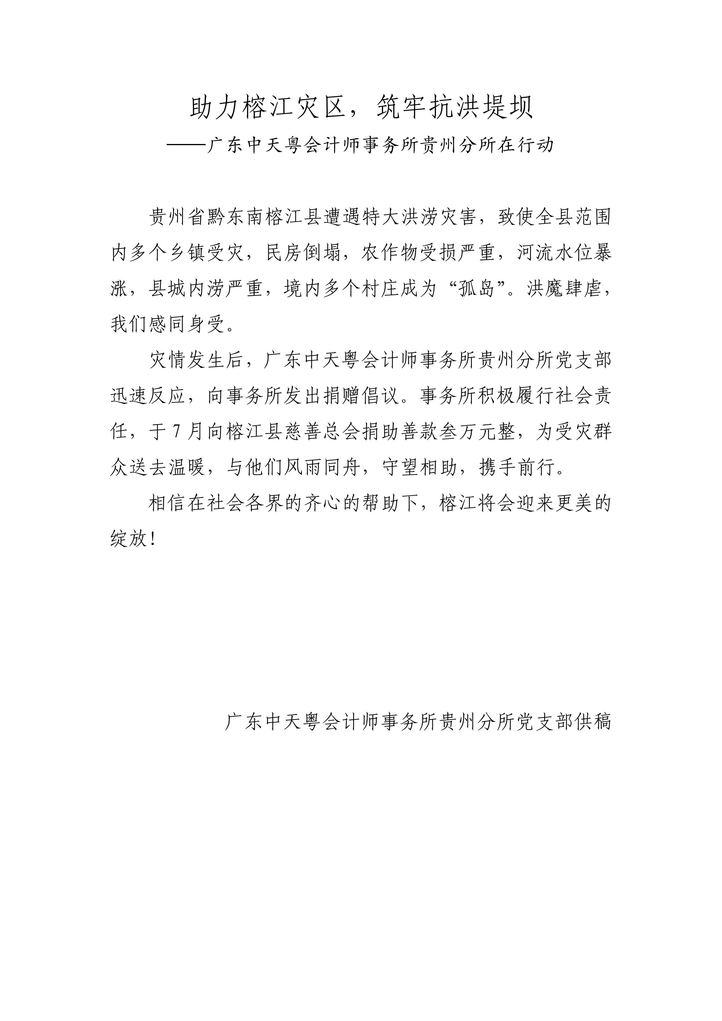 助力榕江灾区,筑牢抗洪堤坝